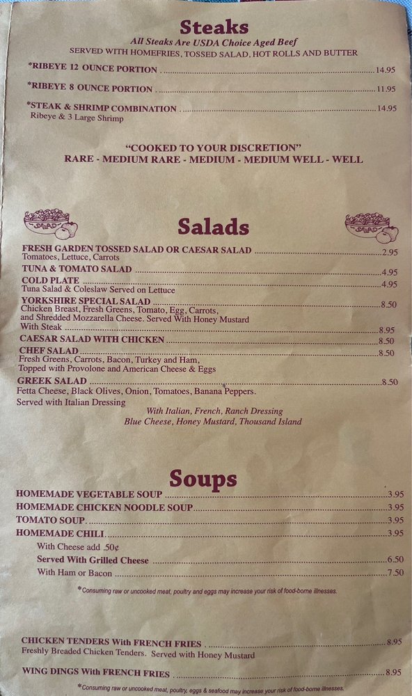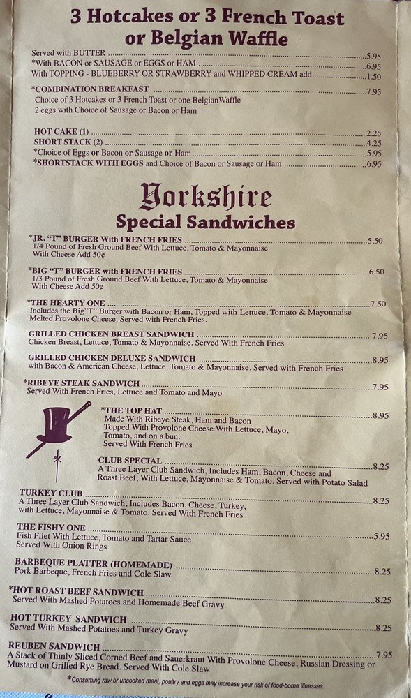 Yorkshire Restaurant Menu (2025 Update)